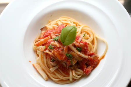 たっぷりめのオリーブオイルとトマトのシンプルな味が夫がまさに望んでたもののようです。