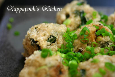 そしてオリジナルは衣はつけずにそのままスプーンで油に落としいれるということですが、これもニラを入れたために焦げそうだったから衣にしました。