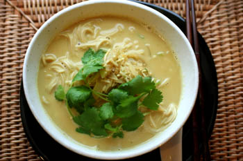 味を見ながら作ってるのでホントに適当ですが、ココナッツミルクとコリアンダー(パクチー)でいきなりタイ風なラーメンになりました~。
