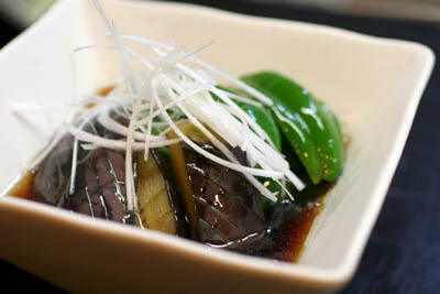 *米茄子とピーマンの揚げびたし*
