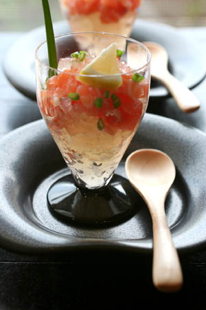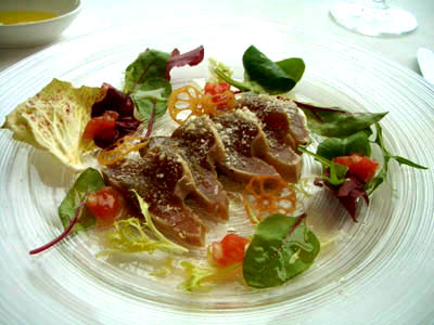 私は、前菜にカツオのサラダ仕立てをチョイス。