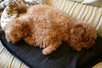 一つのクッションの上に無理やり2匹で眠ってます(笑)。