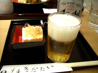 私は、アサヒスーパードライとおつまみ(お豆腐)のセット。
