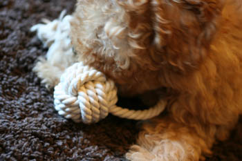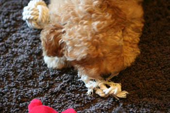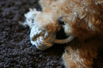新しく買ってきた、びーちゃんのカミカミ用のおもちゃ。ロープです。