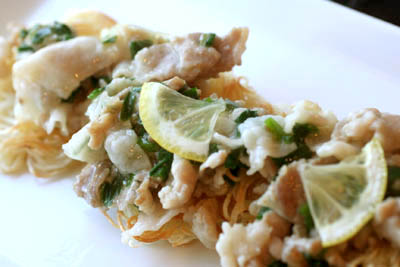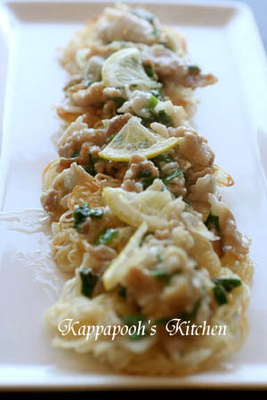 *肉ニラ塩レモンのかた焼き素麺*