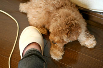 私がPCに向かってる間、びーちゃんは私の足元で寝ています。