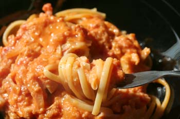母の病院に行かなきゃならないので、お昼ご飯は簡単に、麺でもと・・・考えた結果パスタに決定。