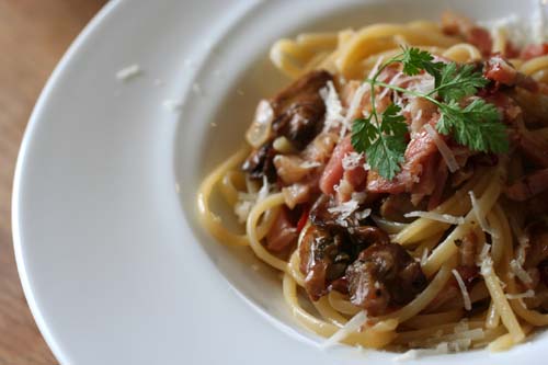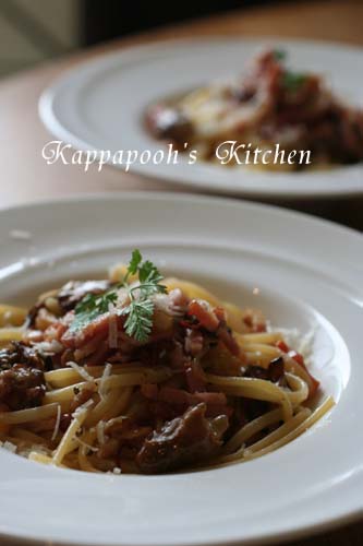 *牡蠣スモークとベーコンのリングイネ*