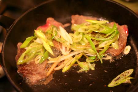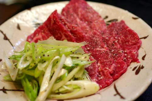 薄く切った白葱を塩・コショウ、ごま油で和えて・・・