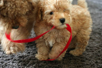 「リボンで引っ張りあいっこ、楽しいでしゅ♪」