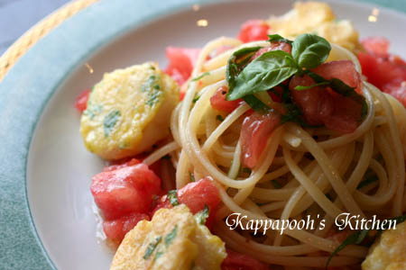 これとバジルで冷製パスタ、定番ですけど、大好きです!