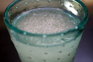 ま、よくあることなんですが、その状態で器に移そうと思うと凍ってる部分だけが残ってしまったりするので、缶切りで開けてグラスに移しました。