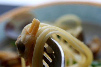 パスタはあさりで、今日はボンゴレビアンコ。