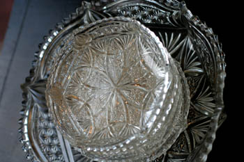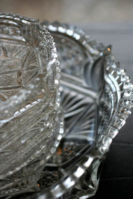 おととい実家から持ち帰ったアンティークグラスに盛り付けました。