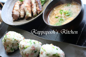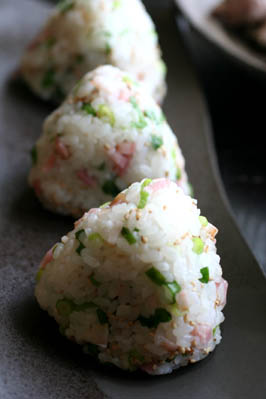 *ベーコンときざみネギのおにぎり*
