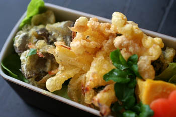 *舞茸、えのき、玉ネギの天ぷら*