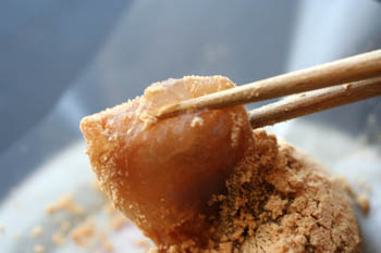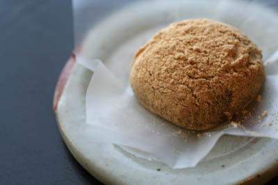 小麦粉、上新粉をまぶし、油をひかずにフライパンでこんがり焼きました。