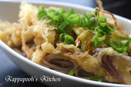 *ミョウガとネギのかき揚げぶっかけそば*