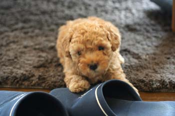 スリッパにも興味を示しだしました。ぷーはそんなことなかったのにな~。