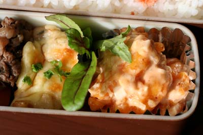 クリックしていただけるとランキングに反映します。よろしくお願いします>o<*海老マヨ・牡蠣グラタンのお弁当*