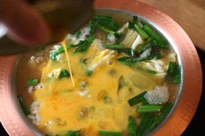 前日モツ鍋風の鍋をやった残りで雑炊です。