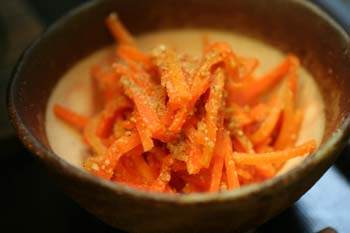 にんじんも冷蔵庫に何本かあるので、胡麻和えに。