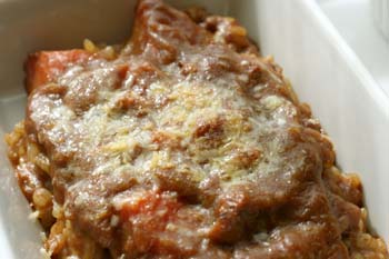 その上にカレーを乗せてチーズを振りかけてオーブントースターで加熱してドリアになりました~。