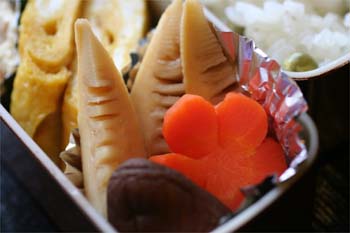 煮汁をかけて、別に煮た椎茸の含め煮も添えました。